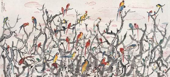 0357 鹦鹉天堂 镜心 设色纸本 |