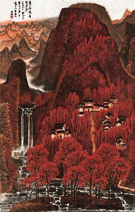 万山红遍,层林尽染。一九六四年秋九月写毛主席词意于北京西山,可染。 |