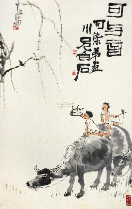 0163 牧牛图 立轴 设色纸本 |